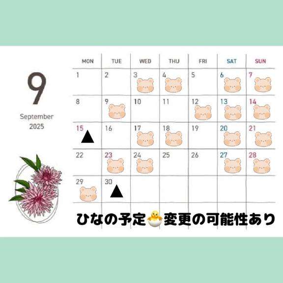 9月8日(月)お休み