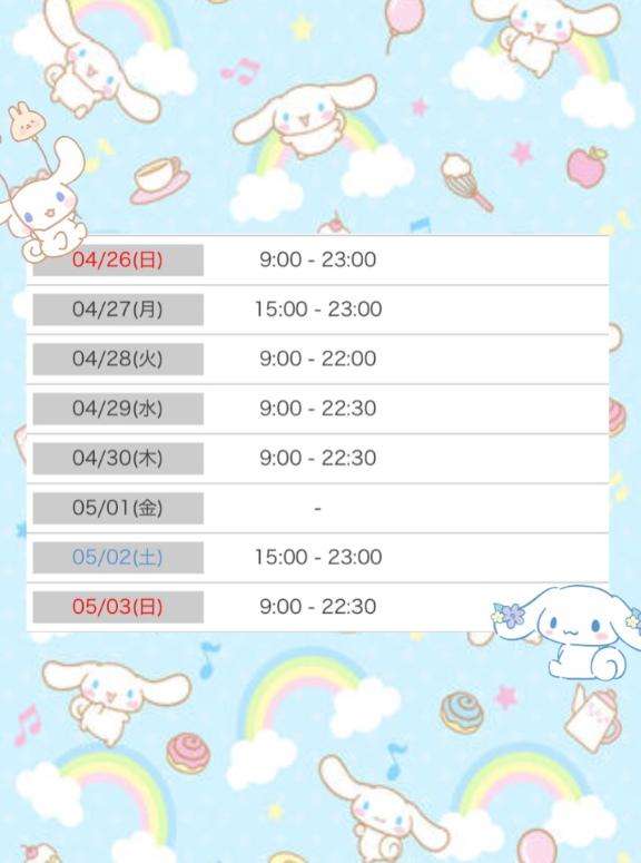 4/26(日)は11:00-17:00います??